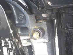 - 実はここのネジはほとんど長期間扱うことが少なく、ネジの奥深くまで塩が侵入し固着します。そうすれば左右に振る力の調整ができないばかりか、無理してレンチで回すとねじ切れてしまう恐れがあります。ネジが切れればそれを治すのには多額の修理費が入ります。通常はネジの中心にドリルで穴を開け、逆タップを切ってはずそうと試みますがなかなか塩付いたネジははずれません。それどころか中のネジは固く、そのまわりの鋳物が柔らかいので、滑って鋳物の方に穴が開く(傷つく)事があります。私の以前のオーナーも経験済みです。ですので私の修理では一度その支柱の部分をそっくり交換しています。少しまわり(黒)と色が違うのがわかると思います。