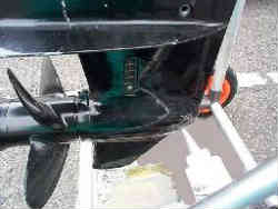 オイルの排出: 下にオイル受けを用意してからネジをはずして下さい。ネジはできれば下から抜く方が最初オイルの出の勢いが少なくて良いでしょう。さらに上のネジを抜くとオイルは勢い良く排出されます。この時オイルの色等を観察しましょう。白く白濁しておればペラの軸奥のシールドが破れて海水が混入していると考えられます。そしてオイルがかなり黒くサラッ(シャブシャブ感)としてれおれば、かなり長期間交換していないものと推察できます。 右の写真はまだ黄色いオイル色していますが、約半年前に交換したものです。私は1年に2回交換(シーズン初めと途中)します。オイルはエンジンを使用してなくても酸化しますので1年に1回は最低交換しましょう。 | ![]() |