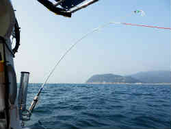 この季節とっても良い天気なのでブラッと行ってきました。そろそろテッポー釣りの準備も兼ねてです。巷では皆さんソリッドの竿を使っているみたいです。今まではゴムチューブでアタリを取っていました。昨年岩崎釣り具で値段を聞くと1万数千円です。高いので私はエイトで同じようなソリッドの竿(6500円)を買っていました。それにひもを付け製品化しました。その試し釣りと長い仕掛けを扱う練習も兼ねています。泉南の方ではブリやサワラが釣れているとか?。竿の作り方は簡単でひも を付ける部分に薄い両面テープを巻き、細いナイロン(強度が一番ある)ひもを沿わせ、細い糸で丁寧に巻いていきます。最後の巻き処理を終えて瞬間接着剤を付けるだけです。私は三箇所付けました。竿の根元は単管の竿受けにピッタシはまるように太さを増しています。ひもの先には極太のクッションゴムを付けています。先端には100均の釣り用の鈴を付けています。ポイントへ着き仕掛けを流していきますが、やはり慣れていないので感覚が違います。何回か流すと慣れてきます。ソリッド竿も上手くいっています。しかしアタリはありません。ビシマ糸の長さが長いのかツバメ板が2回とびました。少し短めにしたいと思います。ビシマ35mで水深40mでギリギリで根があるととぶようです。するとナンチャンがブリ2本上げたみたいです。ポイントも長さ等も聞きましたので次回挑戦してみたいです。もう少し(4月〜5月)すると本格的な引っ張りのシーズンとなります。今年もサワラを狙ってみたいと思います。昼前からは性懲りも無くコウイカを狙います。ポツポツと釣れます。おおよそ30分に1回くらいです。3匹釣った所で納竿です。新しい自艇でのテッポー釣りなのでまた色々と改良の余地が残っていますので工作していきます。恵まれた天気の元12V仕様のMP3プレイヤーとアンプとスピーカー(合計3500円は安い)で懐メロを一人聴きながらのんびり釣りをするのは釣果を抜きにして気持ちの良いものです(ウソ負け惜しみです)。この季節じっと辛抱です。 |
