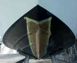 | 船で流し釣りをする時、スパンカーを張っても前方(バウ)側の下部(キール)が出っ張っていないとフラフラとして風に立ちにくいのです。以前の船や小さな船の時代には表差し舵という物を作って操作していましたが、やはり一回づつ上げ下ろしするのは面倒くさいものです。そして前艇では下ろした事を忘れて旋回したためにグニャッと支柱が曲がってしまい撤去しました。最近の釣り仕様の船では最初から付いています。横波や追い波の時に舵が取りにくいというデメリットもありますが(直進時の乗り心地は増すというメリットはあります)、安く(1万円以内)自作することにしました。釣友は業者に頼んだら約12万円かかったみたいです。 | |