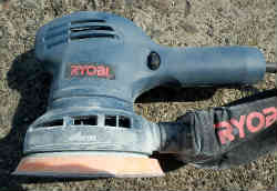 ![]() 電動サンダーで適当に磨き成形をします。その後濡れた布で細かな粉を拭き、乾けばアセトンで再度汚れを除去します。そしてトップコート(黒色)を塗ります。トップコートも樹脂同様硬化剤の比率があるので注意して混ぜます。ローラーで塗っていますので仕上がりが今イチです。スプレーガンならもっと綺麗に出来ると思いますが、乗っている時は海の中ですので気にしなくて良いでしょう。サンダーでもっと丁寧に磨けばもっと綺麗になると思いますが、邪魔くさいので適当としました。結果合計時間は約20時間です。かなり試行錯誤をしましたが、次回もし再度トライすれば12〜13時間ぐらいでできるかと思います。 | ![]() |