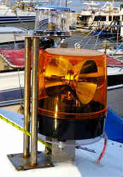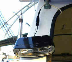 パトライト&白灯: 夜間や夕暮れ時に他船より目立つため黄色のパトライトを設置した。ステンレスの角パイプを台座に透明のポリカ板を円形に切り取り付けた。その上の白灯(クリアー)も古かったので新調した。現在では撤去しています | ![]() |
