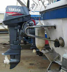 補機エンジン:先日巡航中に沈みかけた流木にペラが当たり航行不能となりました。その時はBAN(救助システム)にお世話になり曳航してもらいましたが、救助を待っている間かなりの距離流されてしまいました。よく他の事故等では磯に打ち上げられたり、かなり遠くまで流される危険性があるので、とりあえず近くの漁港まで逃げ込めるようにと補機エンジン(ヤマハ2スト8馬力Sサイズ)を取り付けました。現在では撤去しています | ![]() |