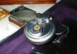 携帯置き兼防水ケース: 以前携帯電話はアクアパックに入れ一回一回開けて応答していました。携帯は防水ではありません。またアクアパックも折りたたみ式のではなく小さな物入れ用でした。そこで釣り座(デッキ運転席)の前にパイプ用クランプ金具で海外の防水パックを取り付けてみました。一応蓋をすれば生活防水(本当は密閉出来るがネジ留め用の穴を開けているため)程度は大丈夫でしょう。現在では使用していません | ![]() |