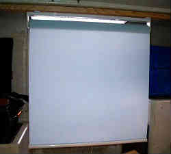 キャビン内目隠しスクリーン:キャビン内のトイレを使用する時スライドドアーは閉めますが少し透明です。外から中はあまり見えにくいのですが、中からは明るい外はよく見えます。特に女性は気になるものですから、引っ張れば伸びるスクリーンを取り付けました。現在では使用していません | ![]() |