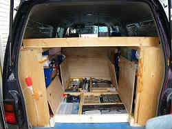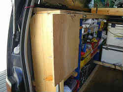 | 10年以上ぶりに車内荷室を大幅に改造しました。今までは容積はあったものの間口が小さいので奥にある物が出しにくかったことと、背の高い物が入れられないという理由からです。基本構造としては左右にあるタイヤハウス程度の幅一面に棚を設置することです。まあ人に見られるわけもなく形は不細工ですが実用が第一です。これで自転車や背の高い物・あるいは大きな物まで入れることが可能です。 | ![]() |