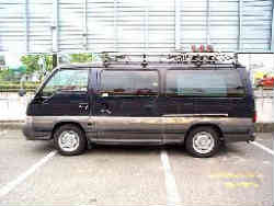 メーカー:日産 車種名:キャラバン「ライトバンロング2WD」 グレード:VX 全長:4790mm/全幅:1690mm/全高:1950mm 車両重量:1630kg/乗車定員:5人/最大積載量:1250kg エンジン:ガソリン2.4l ツインカム/最大馬力:140ps/最大トルク20.5kgm タイヤサイズ:195/70R15 車両本体価格:246万円/オプション:ABS 購入時期:99年10月 ナンバープレート:1ナンバー(大型貨物車) | ![]() |