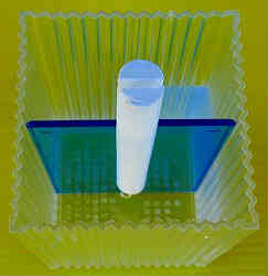 型3案:ケーキを作る時に利用する型(100円均一商品)です。その中央部のテーパー状になっている筒を利用します。先端は穴が空いているため、混ぜ合わすと硬化するボンド(鉄状になる)を丸くして先端に詰め込みます。 これを適当な容器に入れ差し込みます。 かなりのテーパー状なので、抜くのは非常に簡単だった。 | ![]() |