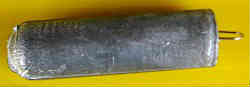 上記半分に切断しない結果: 結果的には割とすんなり抜けて成功と思ったが、出したときに石膏の粉とカケラがポロポロ出てきて、再度同じ型で実験したところやはり欠けた所に鉛が入り抜けにくく、無理矢理出すと余計に穴が大きくなった。結局これで何回も製作するのは断念する。写真は同じ型から出したオモリだが、右は1回目で左は2回目で少しバリが出ているのがわかると思う。 | |