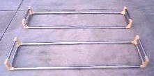組立て4: 最後に先ほどのパイプをはめていきます。このバーではイレクターが固定されていますので容易だと思いますが、ややこしい場合はこの時少しジョイントの位置をずらしながら叩き込みます。最後にもう一度全体のゆがみを見て必要なら修正して下さい。これで完成です。 |