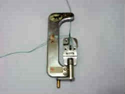 | これが私が使用している簡易ハリ結び器です。ハリの種類や大きさを問わず、巻く回数を自分でその都度決めることができ、きっちりと巻くことができます。 | ![]() |