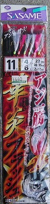 ササメ×6本ハリ アジ一筋華炎フラシュ 全長2.65cm 6号×4号×20cm 440円 |
