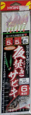 ハリミツ×6本ハリ 夜焚きサビキ 全長2.45m 6号×5号 462円 |