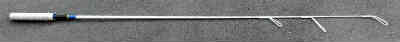 | 和歌山にあるI釣具店で本物の竿が売っていると聞き電話でお値段を聞くと1万数千円でした。これは高いと判断し似た素材(ソリッド)を探すとE本店で見つけました。特価で6千500円です。他の方の本物を見て自作してみました。竿の長さはおおよそ2mで上の方に3箇所ほどビシマ糸(の前に極太クッションを付けるが)を付ける輪と柄の部分を太くして、トローリングポストにピッタシはまる物を作りました。 |  |