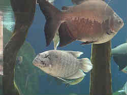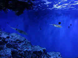 | ここは大きな海水魚たちのコーナーで特に珍しいこともなく、ただ大きな魚が優雅に泳いでいるだけです。 | ![]() |