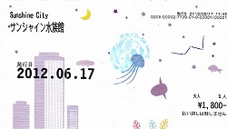 | すみだ水族館に引き続き、その足でまた地下鉄を乗り継ぎ池袋までやってきました。ここもテレビのニュースでやっていたので見学してみたいなという感じで選びました。ここはビルの屋上にあるという珍しい水族館で、隣は天空のプラネタリウムもあるみたいです。最初に驚いたのが、屋上直通の専用エレベータに乗るのに10分並ばないといけません。そして二基あるエレベータの入り口でチケットを買い(右上写真)入場です。入ると左に屋外の展示会場、右に屋内の水槽展示場へとわかれます。写真はメインの屋外展示場です。下の説明にあるアシカが天空を泳いでいるパイプ状の水槽?とそれ以外のコーナーがあります。 | ![]() |