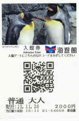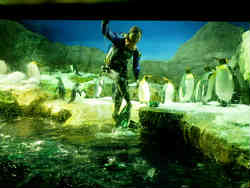 | ここは「ペンギン館」で定期的に上から氷の雨が少しづつ降って来ています。中のウエットスーツ姿のお姉さんは寒い中、水槽の掃除をして上がってきたところです。 | ![]() |