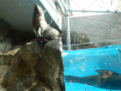右はすみだ水族館にもあったチンアナゴで砂の中に下半身を隠してエサを待ちます。左はB(海獣の王国)のアザラシです。アザラシは屋外にいてます。 | ![]() |