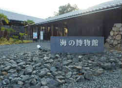 特別編:海の博物館鳥羽水族館をあとにして民宿入りまで時間があるので、以前にも行ったことのある「海の博物館」(入場料800円のところ割引100円の700円)に行きました。入ったのが閉園1時間ほど前ですのでゆったりとは見る事ができませんでした。入ってすぐに海女さん仕事というのDVDを観て隣には「海の幸」コーナーがあります。後ろの店員さんは人形です。手前の見ている人は本物です。海の魚介類がたくさん展示しており、本物そっくりのろう細工?みたいな物です。 | ![]() |