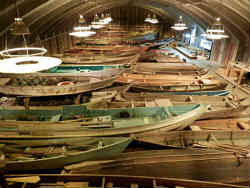 その隣には伊勢の海女さん達の小屋が展示され、中に人形の海女さんが身体を温めています。伊勢志摩と言えば海女さんで、現在では激減しつつもこの志摩地方には多くの海女さんが居るとのことです。海女さんは日本と韓国のみらしいです。それ以外にも古い船大工の模型やミニチュアなどの展示が有り、ここの船の展示館には全国から集められた実際の古い木造船が所狭しと展示されています。その後、伊勢地方の漁業にまつわる写真展を観て終わりです。その後民宿へ直行です。 | ![]() |