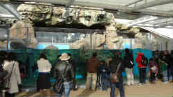 ここは生まれたばかりの雛ペンギンの展示です。保育器の中に入れられ、給餌の時間帯もあるのでその時は見られるかと思います。しかし展示スペースが小さいのでほとんど見られません。かろうじて手を伸ばし観客の隙間から写すことができました。 | ![]() |