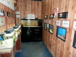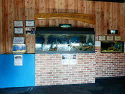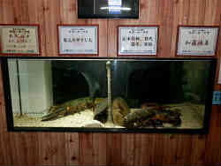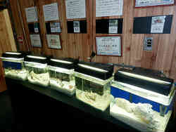 さすがに町立なのか予算が無いようで寄付で成り立っているみたいです。寄付(保存プロジェクト)してもらった人には名前を披露すると言ったことで結構有名人も参加して居るみたいです。パンフレットで見るとここのエビは9種類、カニは23種類です。おおよそ40cm四方の水槽をならべて展示しています。 | ![]() |