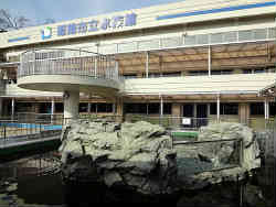 大阪を出て2時間半で到着しました。入るとほとんど観客がいません。市立のせいか係員もスタンバイぎりぎりの感じです。入場料と満足度はほとんど比例しますがここは例外ですね。入り口を撮るのを忘れました。リニューアルしたのかかなり新しい感じです。入ってすぐ姫路の海の紹介と広いスペースに水槽が展示されています。 | ![]() |