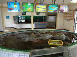 ここは定番の触れ合いコーナーですが誰もいません。試しに私もタッチしてみました。最近はこのような場所を設けているところが多くなってきました。ちゃんと水道と石けんがあり、手を洗えるようになっています。 | ![]() |