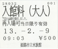 | @施設全体の規模=2/A施設や水質の綺麗さ=3/B水槽の容量や種類=2/C魚の種類や希少性=1/D魚や海獣のショーやパフォーマンス度=1/E展示アイデア・プロデュース特別度=2/Fコストパフォーマンス度=2)・合計得点=13点 | |