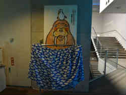 セイウチ館での「セイウチのランチタイム」です。2頭のセイウチにエサをあげながらパフォーマンスをしていきます。以下HPの紹介文です。トレーナーがお魚をあげると前足で顔を隠して「いないいないばぁ〜」をしたり、大きな口から水を吹いてお得意の水鉄砲を披露。ランチタイムのデンとグリはとっても幸せそう。セイウチには歯が生えていますが、エサは吸い込んで食べ、よーく耳を澄まして聞いていると「シューッ」と吸引する音が聞こえます。セイウチのランチタイムを通じて、彼らの特徴を紹介します。 | ![]() |