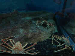 日本一縦長の水槽を下から見上げてみました。左は足高カニの水槽です。 | ![]() |