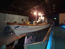 右はイカ漁の船を斜め前から見た物です。全般的には水槽自体は縦長水槽以外は小さく少ない物でした。しかし水槽以外では結構お金も掛かりますが結構他の水族館には無いアトラクションがあるので面白かったです。水槽がもっとたくさんあれば●×5個なんですよね。やっと見え終えて本日泊まるホテルへと向かいました。GW前の半値のホテルでしたが、1泊2食付き(温泉付き)でリーズナブルなお値段で満足のいくものでした。 | ![]() |