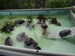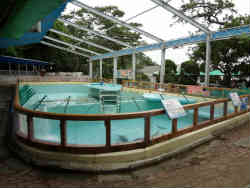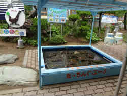 そしてカメのプールです。本物の大きめの舟の中で3種類のカメがのんびりとしています。説明文もありますが、屋外なのか手入れはされていない感じです。退園してみるとこのイルカの奥にアザラシが居てたみたいです。 | ![]() |