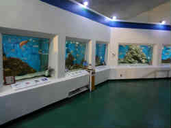 大きな水槽は無く住宅の窓程度の大きさの物が並んでいます。左は定番のウツボです。 | ![]() |