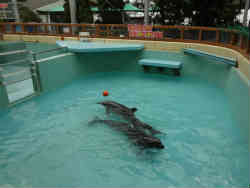 他の水族館と同じような感じで人影もまばらです。左は屋外(中庭)へ出ますとイルカのプールです。 | ![]() |