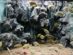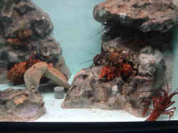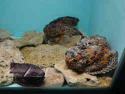 右はイセエビ・ゾウリエビ・セミエビです。左は見るからに不気味なオニダルマオコゼで岩みたいな感じです。ほとんど動きません。 | ![]() |