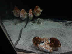 右はマツカサウオとホウボウ(も筆の誤りとダジャレ)です。左は古代から生息するオウムガイです。 | ![]() |