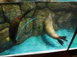 「ふれあいラグーン」にはかなり狭い水中トンネルがあり、アザラシたちが泳いでいます。 | ![]() |
