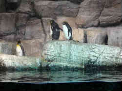 次はペンギン館でオオサマペンギン・イワトビペンギン・マカロニペンギン達がいます。次はここのメインとなる大水槽で、エイ・アジ・イワシの群れなどが優雅に泳いでいます。 | ![]() |