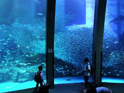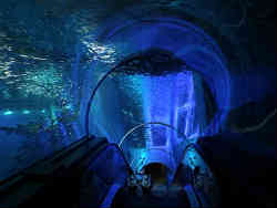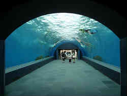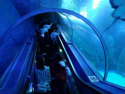 ここのアクアチューブ(水中トンネル)の特徴はエスカレータが中にあるのです。水中の中を自動で上りながら眺めることができます。右写真は昇る前、左は昇った後振り返った写真です。 | ![]() |