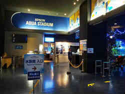 天井には吹き抜けの窓が有り、水面の中央が明るく演出されています。イルカショーの演技種目は全てと行っても良いぐらいあります。結構小さい水族館ではストーリー性があり、おもしろおかしくやりますが、ここは本当のショー(イベント)として行います。 | ![]() |