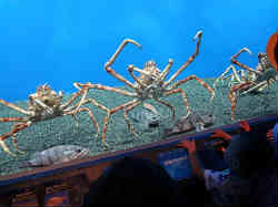 右はタカアシガニ(どの水族館でもタカアシガニの水槽は何も飾り物が入っていない方が多い)で、左はゴマフアザラシです。魚名はとても覚えきれませんので、魚の写真を撮った後、説明文(載せていませんが)も撮ってPCで見るようにしています。 | ![]() |