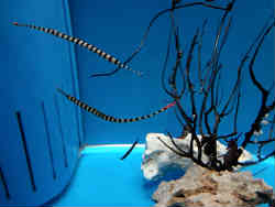 もちろんビルの中ですが何せ水槽が小さい。左はヨウジウオの仲間です。細く伸びた口でプランクトンを吸い取るようにしてエサを捕食します。 | ![]() |