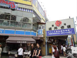 | 最終日昼飯は築地の寿司と決めていたので出向きました。ここは本来の市場では無く、一般外来者のための場外市場です。かなりの規模で外国人含む一般客が魚介類を見ています。ブラブラするだけでも楽しいのです。ぐるぐる回り一軒の寿司屋で寿司と生ビールを頂きました。 | ![]() |