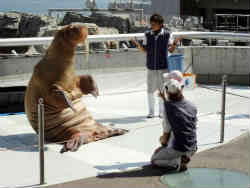 ここの水族館の特徴のひとつとして海獣達が勢揃いして別々のプールに入っています。アザラシ・セイウチ・トド・アシカです。 | ![]() |
