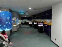 チケットを購入して入場します。入ると小さな水槽が並んでおり、どこにでもあるミズクラゲの水槽があります。ごく普通に見られる種類で傘の中央に4つの生殖腺があることからヨツメクラゲとも呼ばれています。 | ![]() |