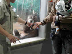 右はイワトビペンギンで体長50cm程で目の上に「冠羽」という黄色い飾り羽があるのが特徴です。いわば長いど派手な黄色の眉毛みたいなものです。左はデンキウナギで面白いのが電球を入れているところです。成長すると2mほどになり最大850V発生させ小魚を感電させて捕食します。 | ![]() |