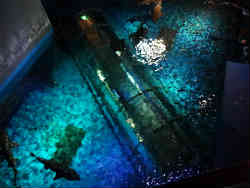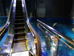 そしてエスカレータで一気に4階まで行きます。両脇には大きなサメの水槽の上が覗けます。身を乗り出したり持参物も落ちてしまわないか心配な感じです。 | ![]() |