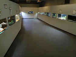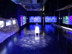 右はマイワシ・マアジ・イサキなどの水槽で群れを作り泳ぎ回っています。左は北海道一の大きさを誇るクラゲのコーナーです。音と光で怪しい雰囲気を醸し出していますが、右はミラーなので広く見えますが半分だけです。クラゲは一般的なミズクラゲで大したことはありませんでした。 | ![]() |
