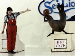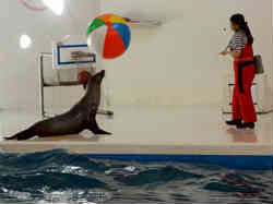 アシカのハル1匹が色々と芸を披露してくれます。逆立ちやボール運びなど器用にこなします。 | ![]() |